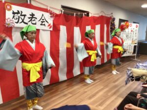 心から感謝と敬意を込めた敬老会では、「秀麗会」の皆さまの素敵な舞踊の披露をしていただきました。